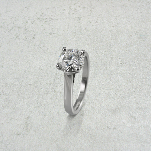 A round brilliant cut diamond engagement ring